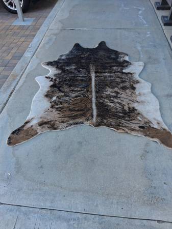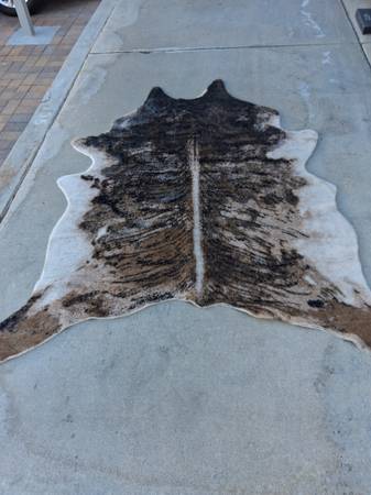 Brindle cowhide rug. Very clean, rug has never been on the floor. Cowhide is very soft, easy to clean with damp cloth, and shake dust. Brindle brown. Measures 76" long x 58" wide. Can be used as a...