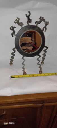 Keith Haring Inspired Table Mirror 5x7x15h $450obo Here is a lovely Keith Haring inspired cut from sheet steel table mirror measuring 5x7x15h. In very good vintage condition.