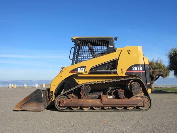 Here is a 2005 Caterpillar 267B track skid steer. Open operator station. Comes with a 72-inch smooth edge bucket and 18-inch rubber tracks. Auxiliary hydraulics and the electrical port connection are in place.