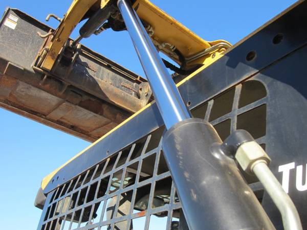 Engine fires up easy and runs smooth. Hydraulics feel strong, and the controls respond without delay. Drivetrain pulls even on both sides, though there is some noise near the drive sprocket outer sleeve.
