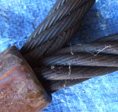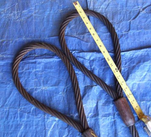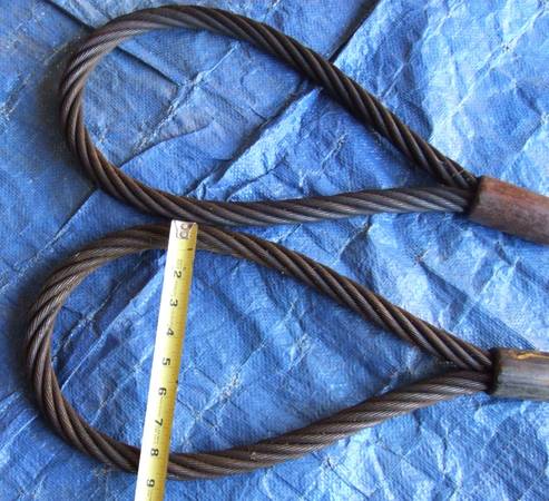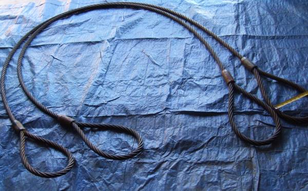 Overall good used shape. The tags have been removed but there are no frays or damaged wire strands noted. Just a bit greasy from past use and sitting in garage for years. There are 2 for sale. Retail cost is $208 ea. Selling for $120 ea or both for $200.