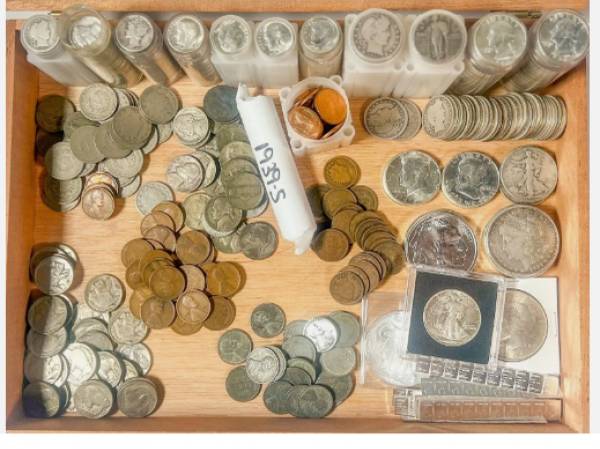 Walking liberty silver half lot and kennedy 4 90% silver coins $2 face value one unc