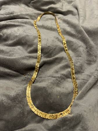Impressive goldtone chain necklace ( i love you) is engraved in it . Wide 30”