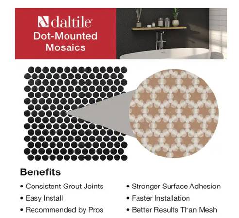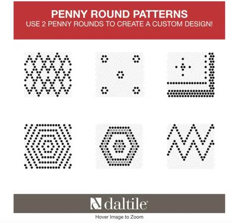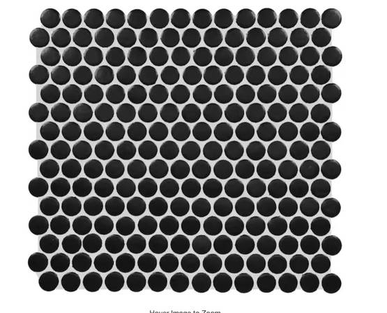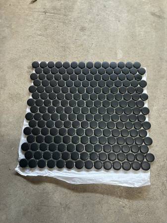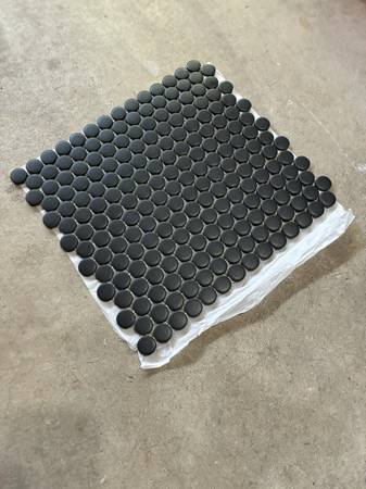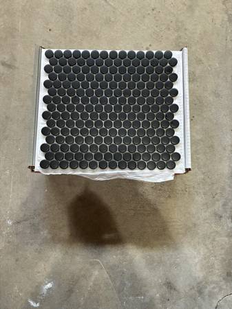 Daltile Restore Black 11 in. x 10 in. Matte Ceramic Penny Round Mosaic Tile (12.45 sq. ft. /case) Brand new. 50+ cases available. Model #RE21PNYRNMSCCMT Retails for $105.00 a case at Home Depot....