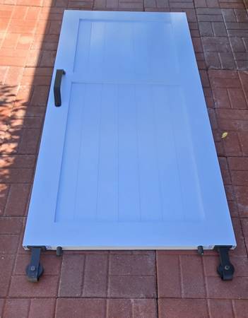 Resin barn door, excellent condition. 3'w x 81" height add additional 6" for rollers. Total height 87", hardware included.