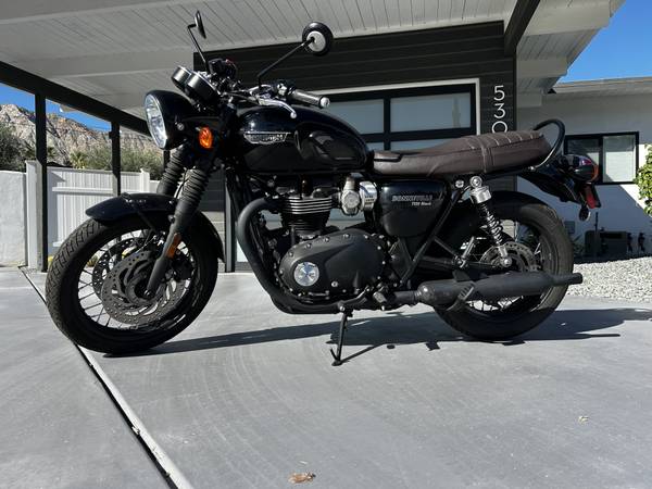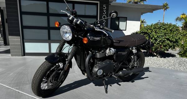If you have been searching for your next Triumph, here is is, black on black, T120 Black. You know the bore and stroke of this twin, 78 HP of pure muscle ready to take you where you need to go. 2018, 13k miles, new oil, new tires, easy on maintenance, ABS, traction control, dual disc brakes, water cooled. Retro'd, faux carbs, fuel injected!