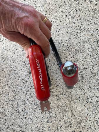 This heavy-duty tempered steel cable lock features a smooth vinyl cover to protect the frame and wheel from scratches. Included: 1 key. Cable length: 6 ft (72") Costs $75 new