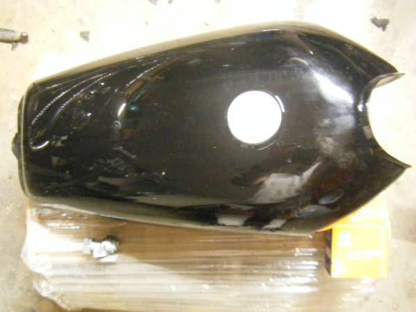 brand new never used in box for narrow frame motorcycle. black tank with cap and fuel petcock $55
