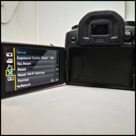 It has a screen protector on the lcd, a cool orange strap, lens cap, hood, original battery - PLUS 2 extra non oem - AND a charger. No box, sorry. These still sell on Amazon for $1,000 USED.
