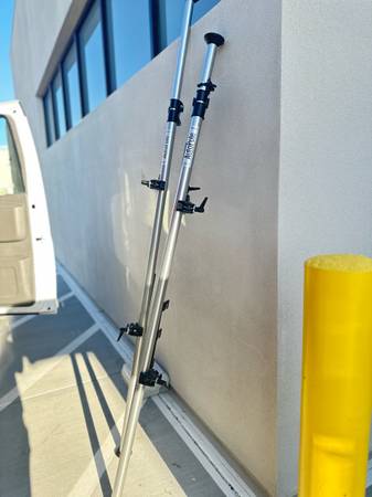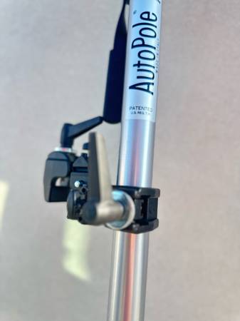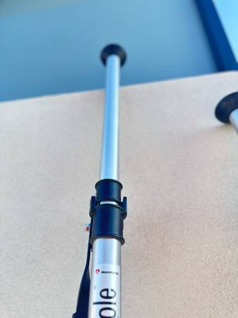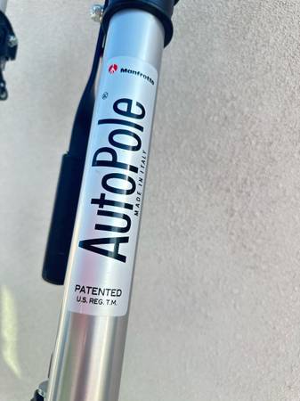 Auto-poles are a great studio accessory. Able to span from floor to ceiling, they will hold securely without legs. A unique locking mechanism assures stability. In situations where the ceiling is too high, an accessory leg set is available. Perfect for holding up backgrounds or can be used as a pole to hold super-clamps. This Manfrotto Single Autopole, Extends From 82.7"-145.7". Color: silver; material: aluminum; maximum extension: 145.67 in.; minimum extension: 82.68 in.; pole diameter: 45.40mm.; weight: 4.85 lbs.