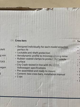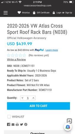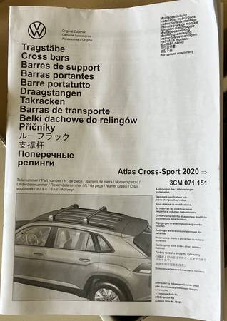 Light used originalVolkswagen crossbars for the roof rack of a 2020-2026 Atlas Cross Sport.