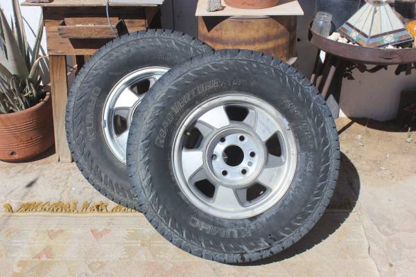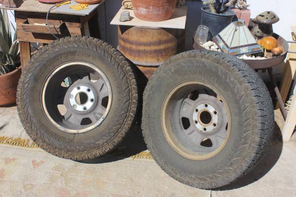 $220 for both or $150 for one. Rims are stock from a 2003 Chevy Suburban but will fit many 6 lug nut trucks, like many Toyotas.