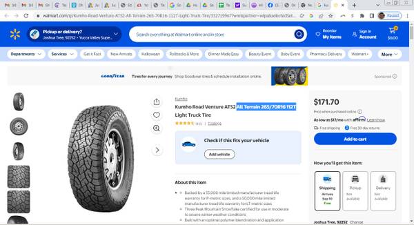 More on the tires from Walmart: