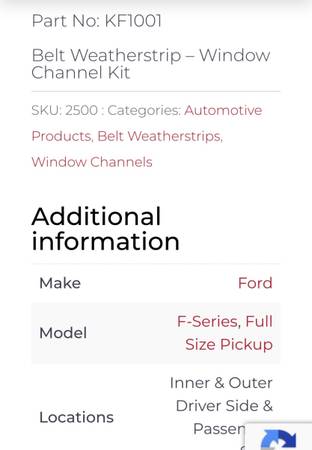 Weatherstrip - Window Channel Kit for a Ford F-Series Full Size