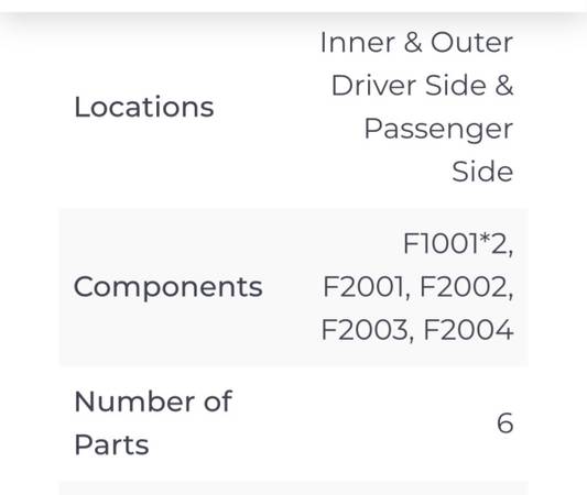 F-Series, Full Size Pickup Inner & Outer Driver Side & Passenger.