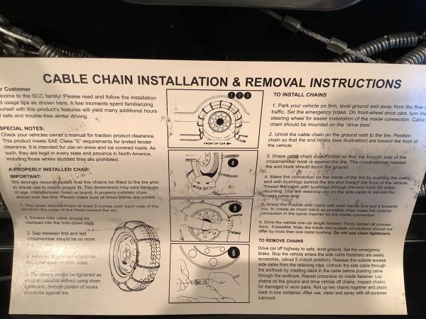 SCC Radial Snow Chains - SC 1038. New, never used. See chart for tire sizes.