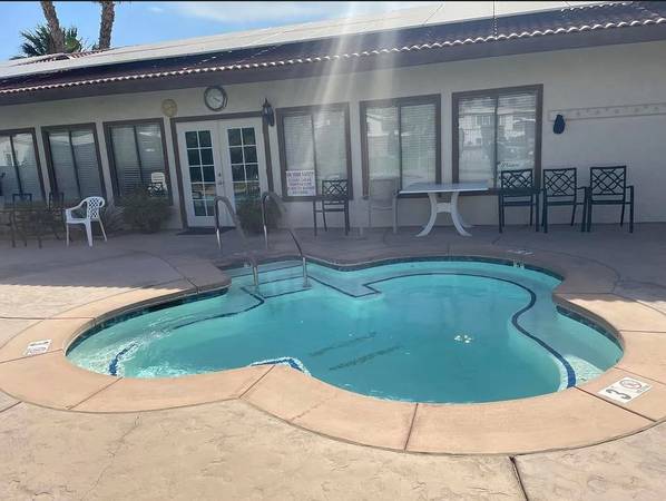 Conveniently located at 17640 Corkill Road, Desert Hot Springs, CA, 92241, Corkill Palms for 55+ Community invites you to tour Unit 1. Our office hours are from 9 AM to 5 PM, Monday through Friday. To schedule a visit or inquire about this remarkable property, please contact us at show contact info