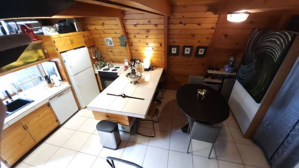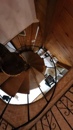 Walk in the front door and up the spiral staircase to a landing, take a left into a loft room with closet and views of a cliff face jetting almost straight up. Go right to your privet full bathroom with enclosed tub and shower with cobalt blue tile floors. Continue on into the large