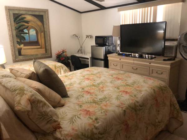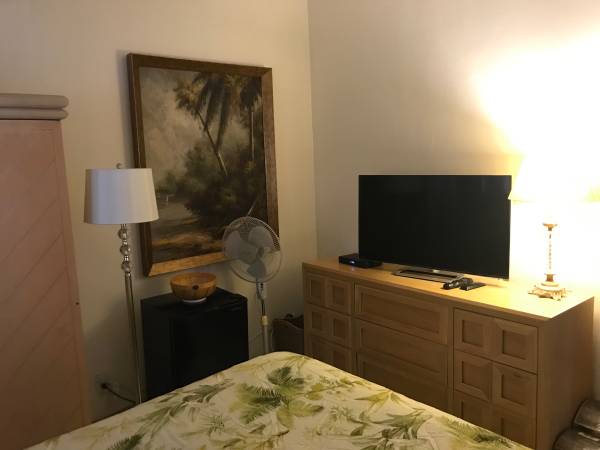 Room has mini fridge and microwave. Desk/chair, closet, dresser, lamps, large flat screen TV with Spectrum Cable.