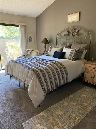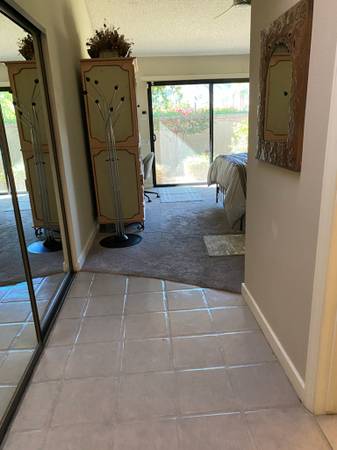 Beautiful large MASTER SUITE with attached/private bathroom, WITH SEPARATE ENTRANCE. completely furnished with queen size bed, nightstands, Apple TV. frig..microwave, and coffee maker. Home is located in a gated community off Frank Sinatra, with pools, spas, tennis courts, pickle ball, workout room and racquet ball. Situated on a lake. . close to Eisenhower Medical center, fwy, shopping, restaurants etc. s.