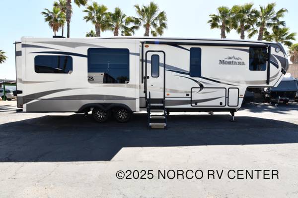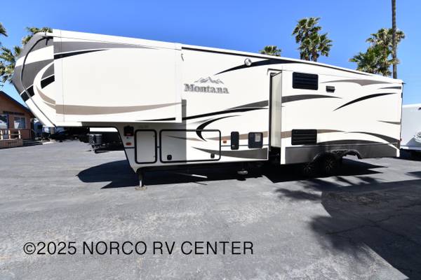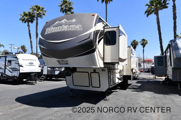 Price was $39,999 now on sale for $34,999 - 2015 Keystone RV Montana 3610RL-Super Nice Rear Living Room 5th Wheel with Onan Propane Generator, 2 A/Cs, 50 AMP, Electronic Leveling, Frames Windows, Electric Awning, Outside Ladder, Spare Tire, King Bed, 3 Slideouts, Central Vacuum, 2 TVs, Electric Fireplace, Kitchen Island, Double Refrigerator, Microwave, Stove Top, Oven. Stock# 02395