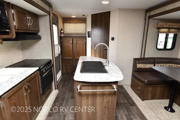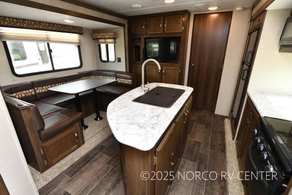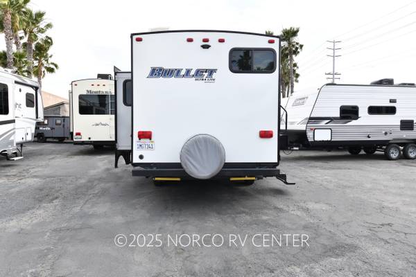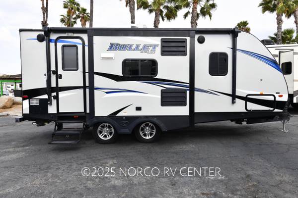 2018 Keystone RV Bullet Ultra Lite 220RBWE Travel Trailer with Two Slideouts, Front Bedroom Kitchen Island, Power Awning, Electric Stabilizer, Power Tongue Jack, Enclosed Glass Shower, U-Shaped Dinette. Stock# 37005