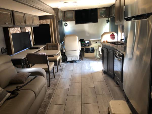 We used it 3 1/2 years and we’ve just aged out. There’s a spacious residual LG fridge w/icemaker. 7KW genset w/186 hrs. There’s 4 100 amp hr Lithium house batteries with wi-fi. Queen mattress....