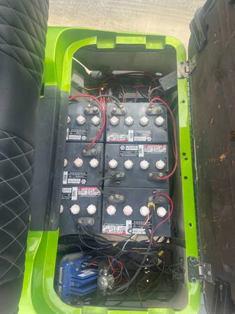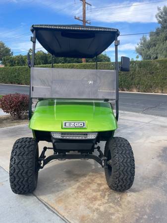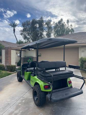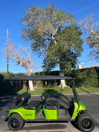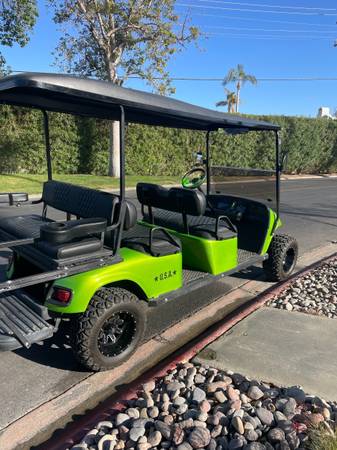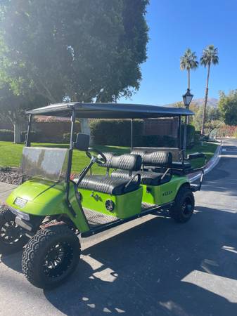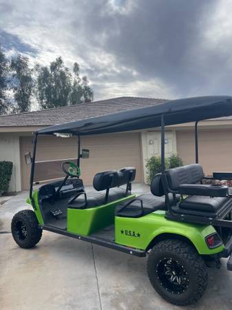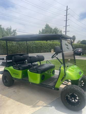 2012 EZGO 48 V 6 passenger electric golf cart with factory extended roof. Lifted with HD rims and off-road tires,fipndown rear seat, upgraded upholstery, new batteries asof June 2025. Also installed in 20233 a flip front windshield, side mirrors, review mirror, carbon fiber looking dashcover with lockable glove box, LED light kit front and rear, Bluetooth (new as of August 2025) withh 2 speakers, front light bar, rear seat armrests with cup holders, floor mats and brand new digital volt meter. Not interested in trades. Can provide access to delivery options - local.
