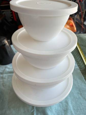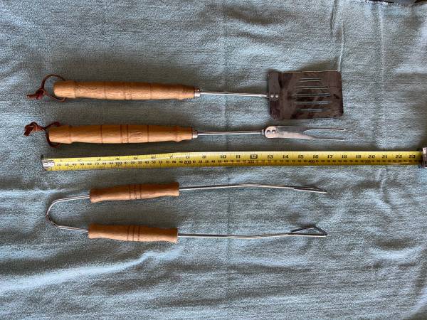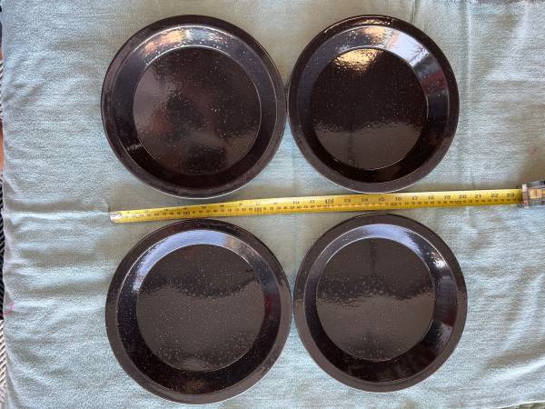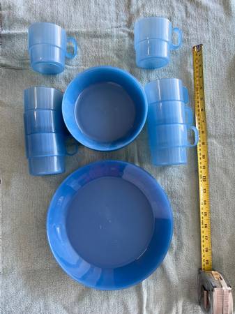 Miscellaneous camping cookware Coffee pot with cups Plate sets with cups Barbecue utensil sets Paper plate holders (2) wicker Large plastic beverage holder $5.00 and up or $50.00 for all Serious...