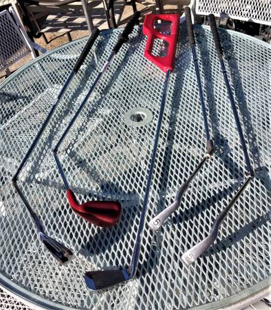 Golf training aids... 5 total clubs available including 4 Dual Hinge Golf Clubs. These training tools will teach you to look like a pro. Smooth out that swing. Buy one or buy all. Please call Marc