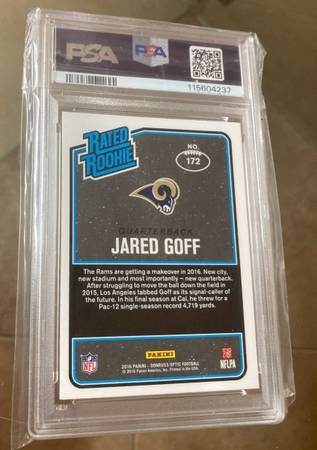 2016 Panini Donruss Optic PSA 9 Jared Goff RC LA Rams Rated Rookie Card #172 . G - $45 (Cathedral City)