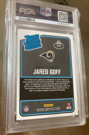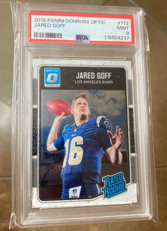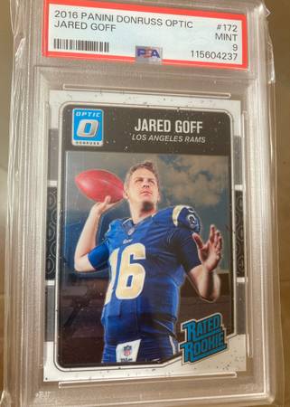 2016 Panini Donruss Optic PSA 9 Jared Goff RC LA Rams Rated Rookie Card #172 . Great eye appeal . I’m my opinion it should be a PSA 10 . Nothing wrong with it .