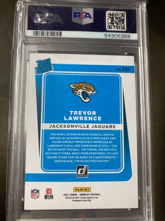 2021 Donruss Press Proof Premium PSA 9 Mint Trevor Lawrence RC #251 Jaguars. Great eye appeal should be a gem mint 10!