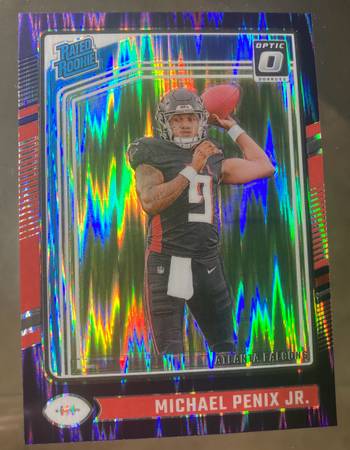 2024 Panini Donruss Optic Rated Purple Shock Prizm Michael Penix Jr Rookie RC . Beautiful card , ready to grade , PSA 10 or 9?
