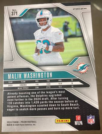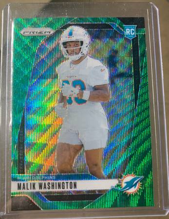 2024 Panini Prizm Malik Washington Rookie Green Wave Prizm Dolphins RC Card NFL. Beautiful card ,ready for grading PSA 10?