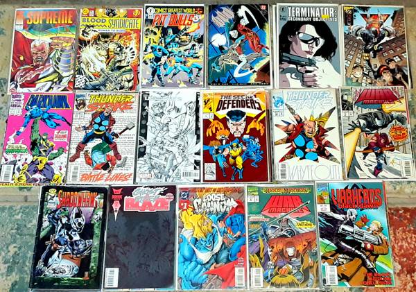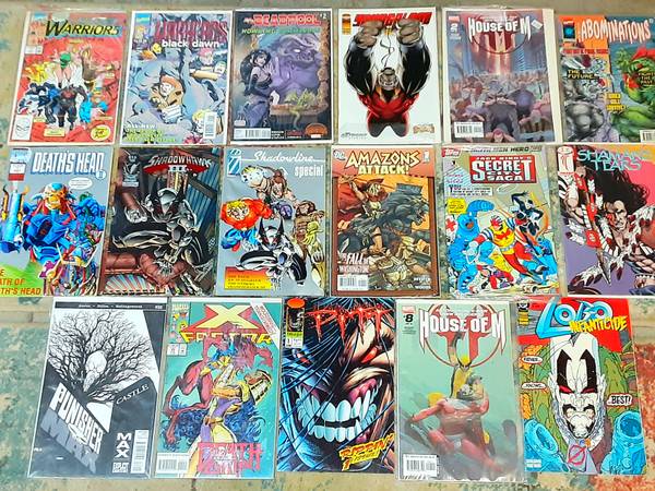 Amazons Attack, The Secret Defenders, X Factor Death Grip, Ghost Rider Blaze Spirits of Vengeance, Pitt, Loose Cannon Bustin' Out of Metropolis, House of M, War Machines Hands of Mandarin, Lobo Infanticide, Warheads Black Dawn, Punisher Castle, Shadowhawk, The New Warriors, Supreme, Shaman-s Tears, War Machine, Death's Head, Thunder Strike WhyteOut, Shadowhawk all, Thunder Strike Battle Lines, Secret City Saga, Shadowline Special, The Ultimates 2, Terminator: Secondary Objectives, Youngblood, Batman Full Circle, Deadpool and the Howling Commandos, Comics' Greatest World Pit Bulls, Blood Syndicate Power to Burn, Wizard 1/2 Even Ash, The Abominations, Brigade, Venom Funeral Pyre, Aloha Flight Special, L.E.G.I O.N., and Amazing Fantasy....PLEASE NOTE: The final SIX titles listed are NOT shown in the photos provided, however, they are in just as good in shape as the rest of the lot shown in pics. Generally, these are all in pretty good shape overall. A good majority are in their own individual clear, plastic protective sleeves.