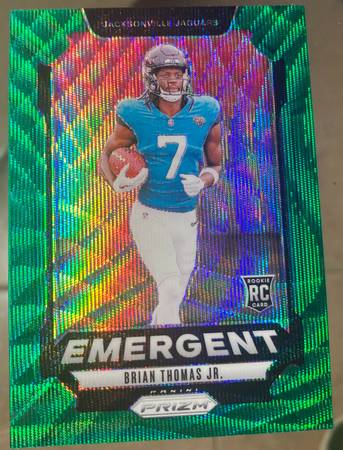 BRIAN THOMAS JR. 2024 PANINI PRIZM EMERGENT ROOKIE GREEN WAVE RC 12 Jaguars Card. Beautiful card ready to grade . PSA 10?