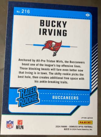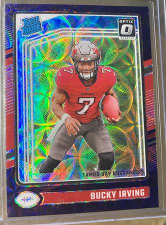 BUCKY IRVING 2024 DONRUSS OPTIC RATED ROOKIE PURPLE SCOPE RC 216 Buccaneers. Beautiful card , ready to grade . PSA 10?
