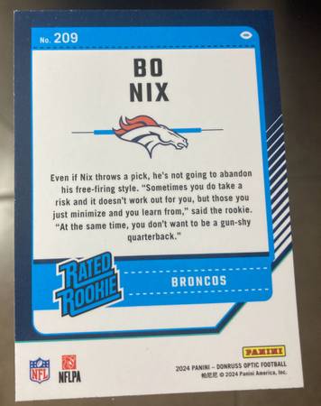 Denver Broncos 3 Card Lot 2024 Donruss Optic Bo Nix Rated Rookie #209 , Zenith i - $25 (Cathedral City)