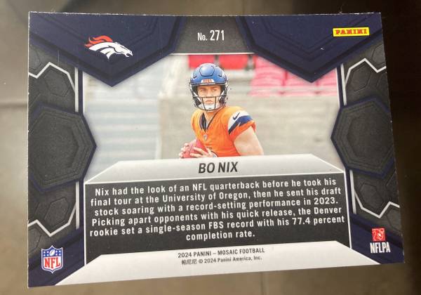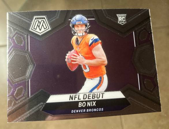 Denver Broncos 3 Card Lot 2024 Donruss Optic Bo Nix Rated Rookie #209 , Zenith idols John Elway Mosaic NFL Debut Rc . Good condition ready to grade .You get all