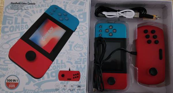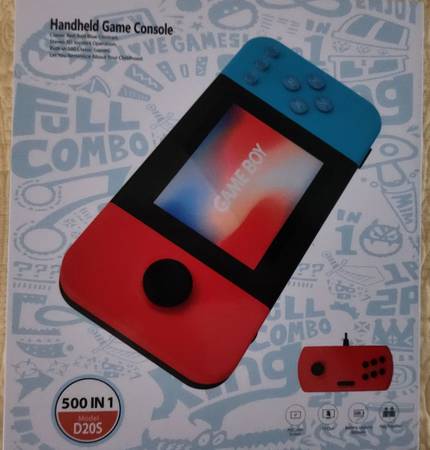 Open box for pictures only it has never been used. Classic red and blue contrast stereo 3. D joystick operation built-in 500 games.