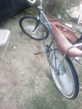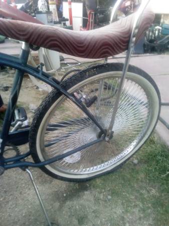 Was planning on finishing the low rider bike but I got more important things to take care of I'm asking 60 for it has banana seat and 150 spoke rear rim I do have a speared chrome crank sprocket and one twisted metal pedal front tire holds air shit me up it's all original