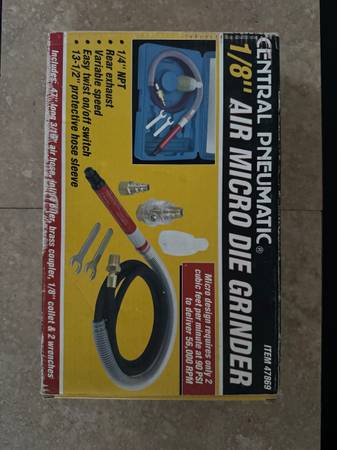 all tools new or like new condition -Tradesman Palm Nailer Kit $50 -Porter Cable 15ga Finish Nailer $60 -Porter Cable 18ga Brad Nailer $40 -Central Air Hammer Chisel $20 -Central Micro Die Grinder...