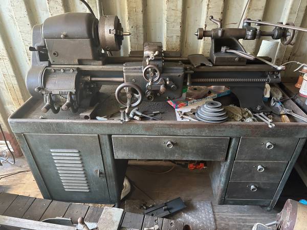 Nice cabinet mounted Logan lathe. A gear needs to be swapped out. I have the gear. Otherwise in good shape.