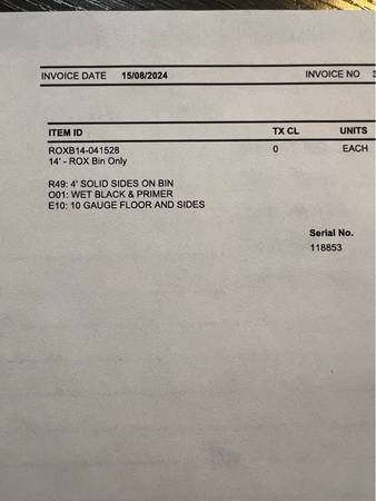 ROXB14-041528 14' - ROX Bin Only R49: 4' SOLID SIDES ON BIN 001: WET BLACK & PRIMER E10: 10 GAUGE FLOOR AND SIDES