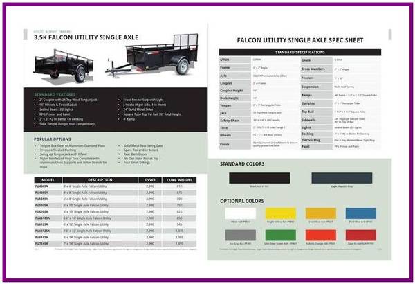 NEW 5' x 8' Single Axle Falcon Utility Trailer $2,415