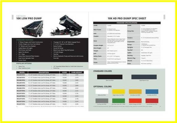 7 x 10 Low Pro Dump Trailer 10K, 48” Sides (RDL48710TA3) $9,165