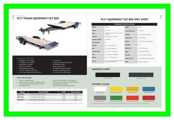 NEW 7’ x 18’ - 5” Equipment Tilt Bed Trailer 7K $5,450