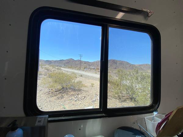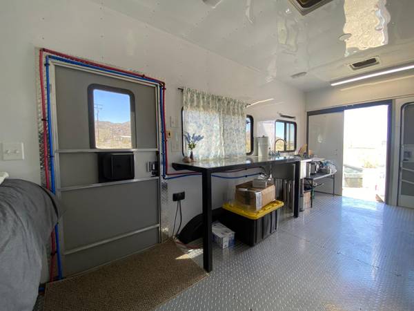 The trailer is located currently 15 minutes east of Joshua Tree, CA.