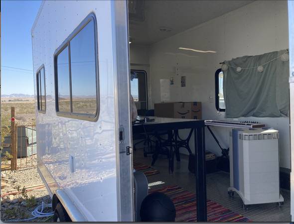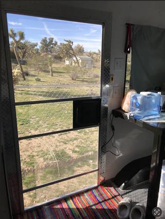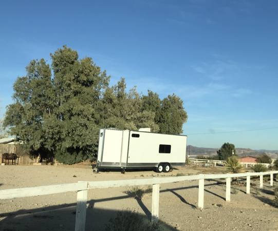 The trailer is located currently 15 minutes east of Joshua Tree, CA.